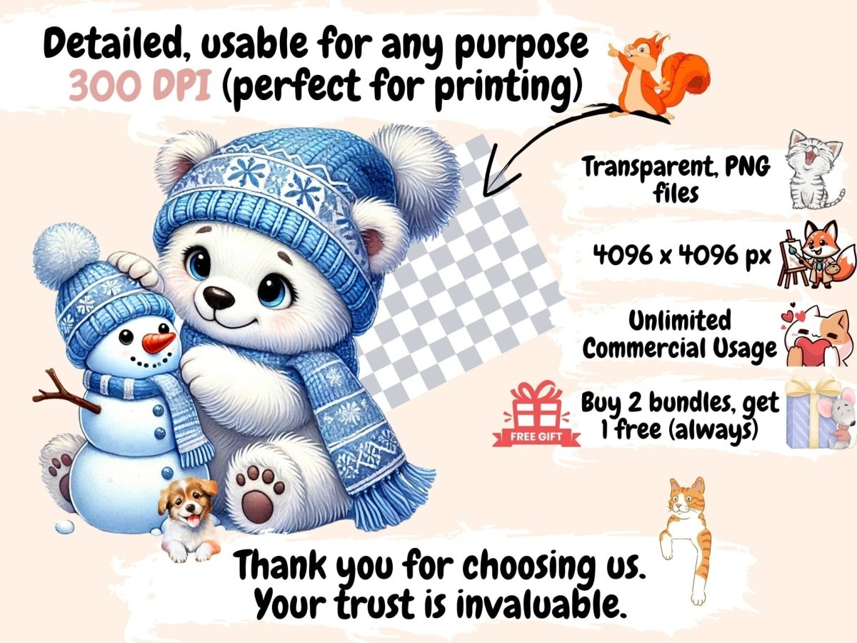 White Bears Watercolor Clipart