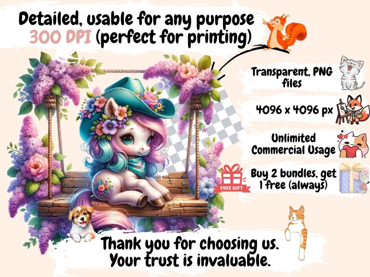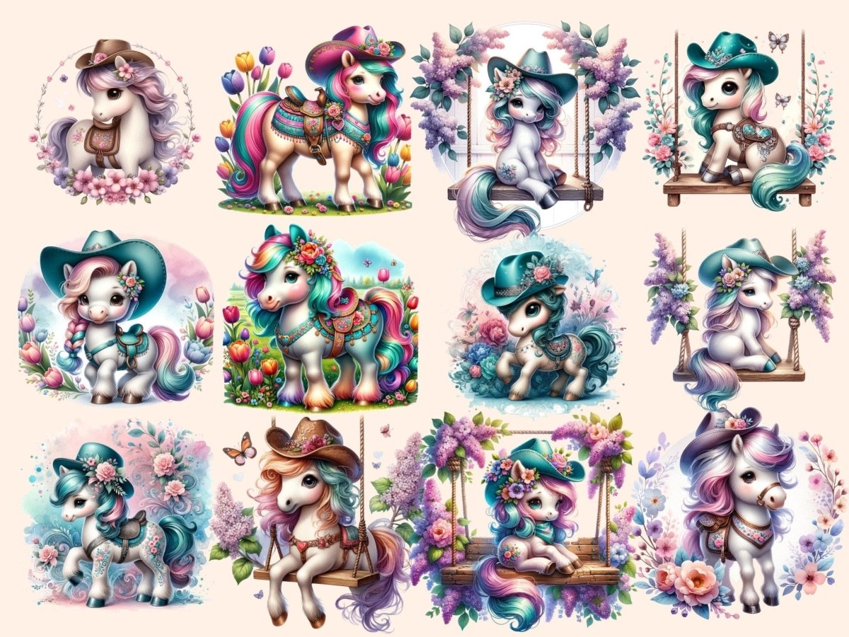 Floral Ponies Clipart