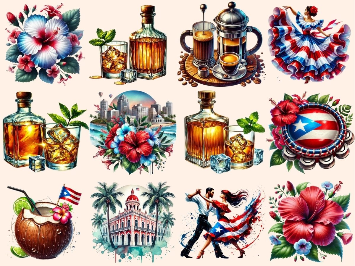 Puerto Rico (P2) Clipart is ideal for designers, educators, and creative entrepreneurs seeking authentic island-inspired visuals for digital projects. You get transparent PNGs, 300 dpi (4096×4096 px; 13.65×13.65 in / 34.67×34.67 cm), with clean cut edges.