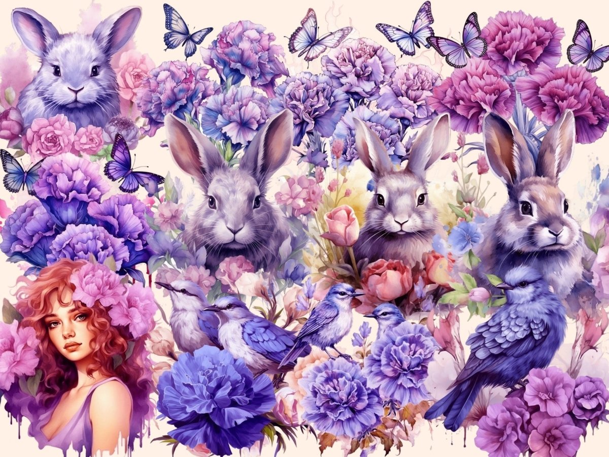 Purple Petunias Watercolor Clipart