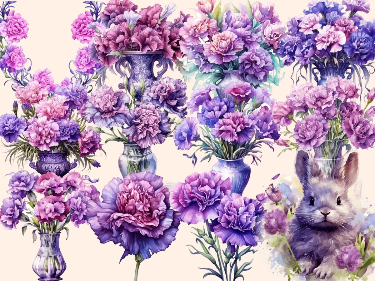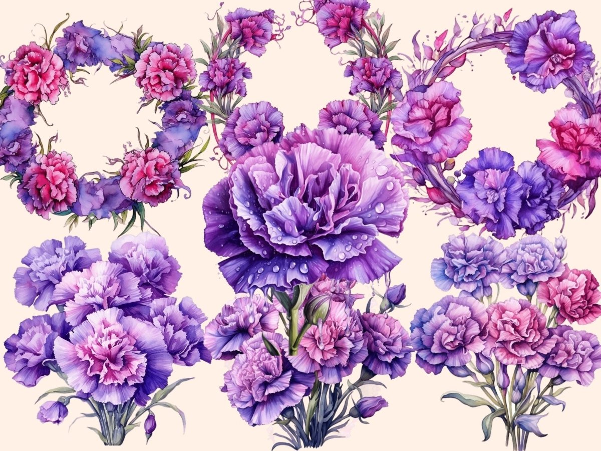 Pink Carnations Watercolor Clipart