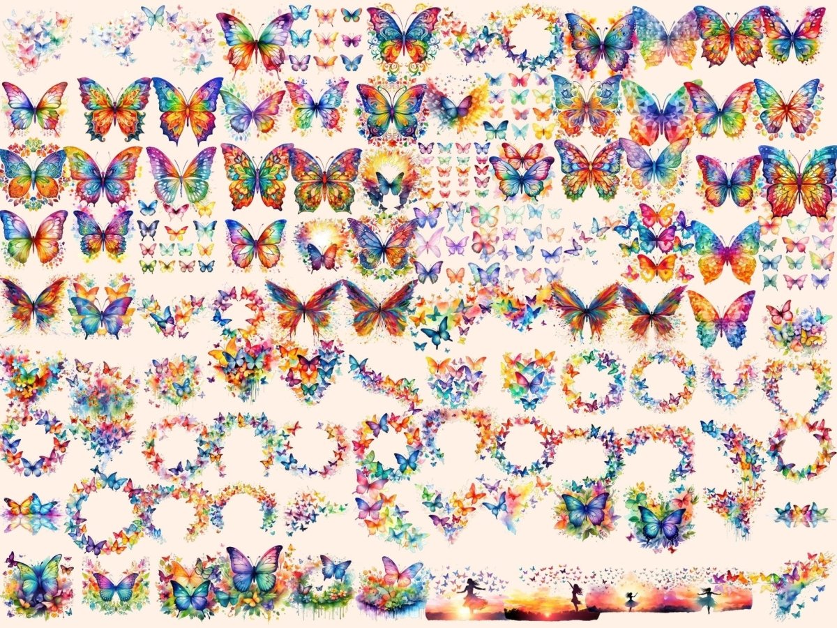 Floral Butterflies Watercolor Clipart