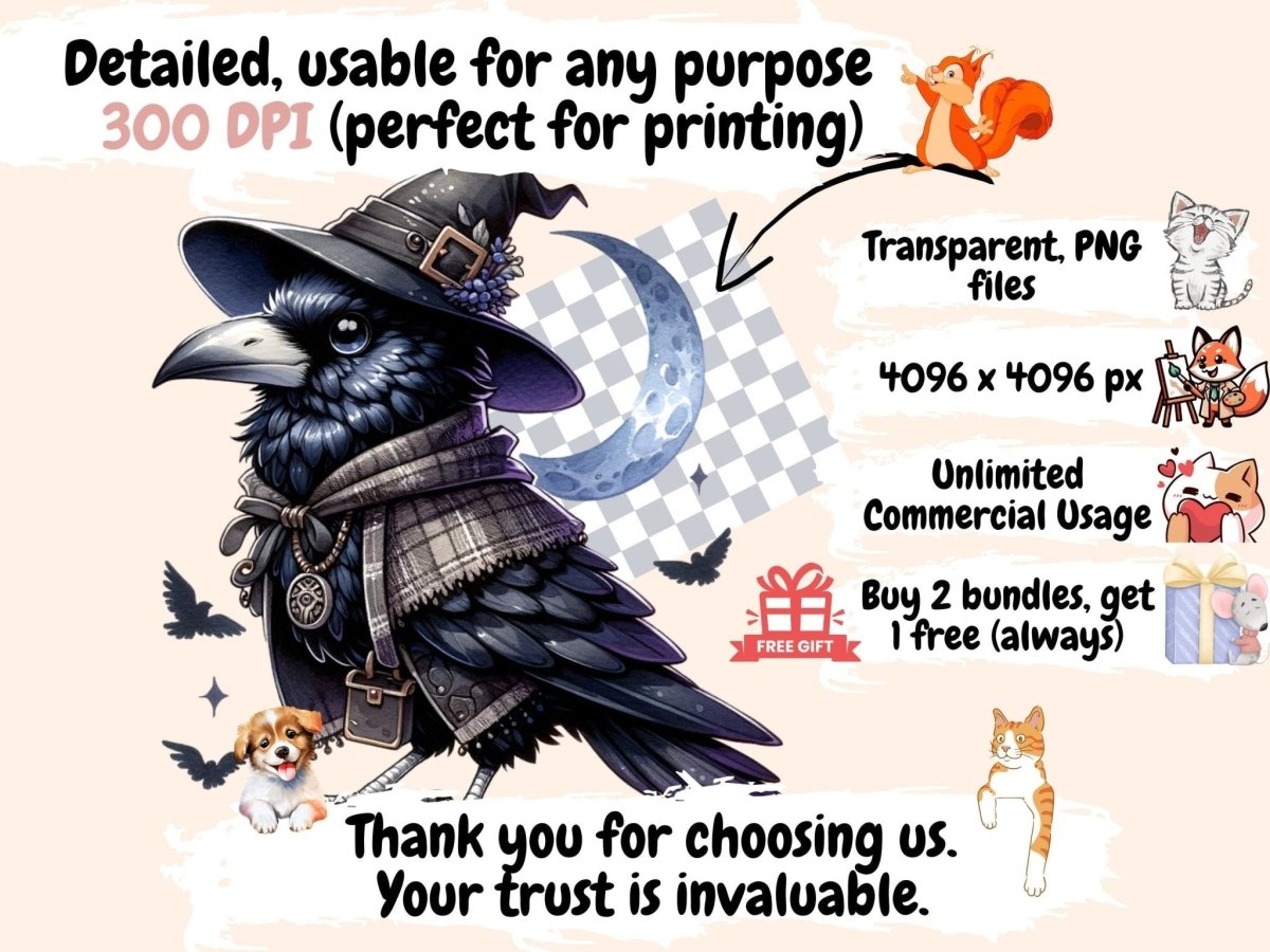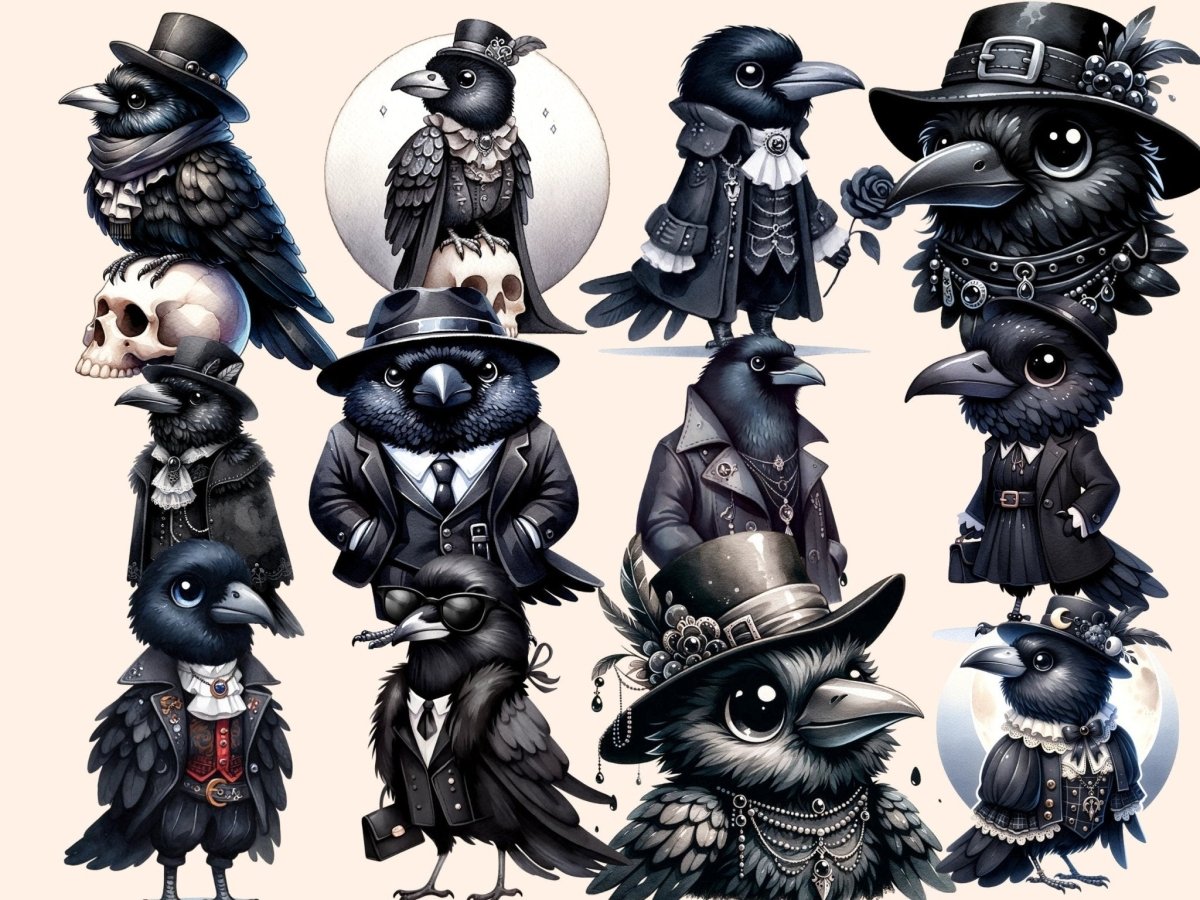 Gothic Ravens Watercolor Clipart