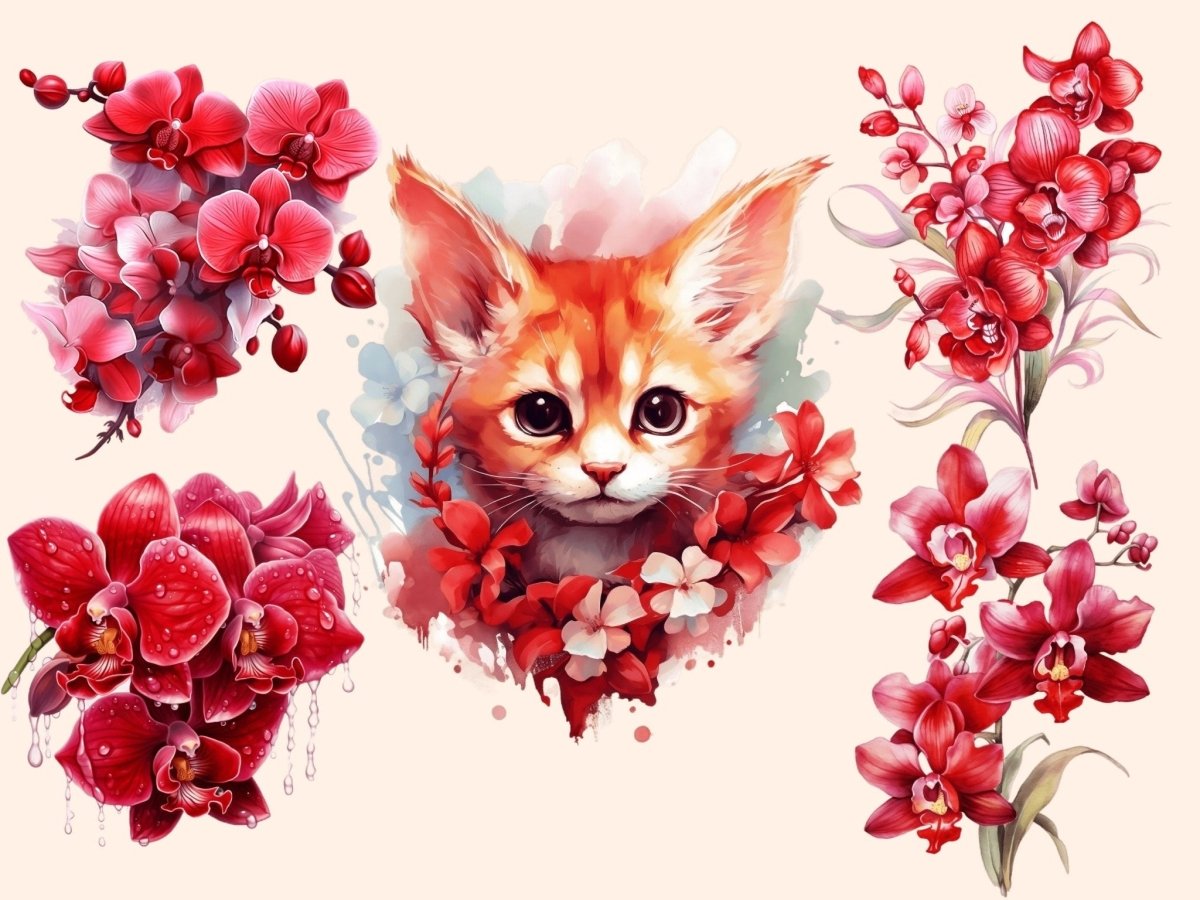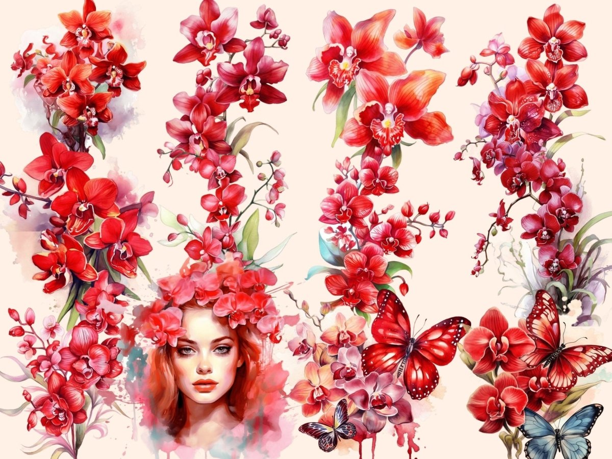 Pink Orchids Watercolor Clipart