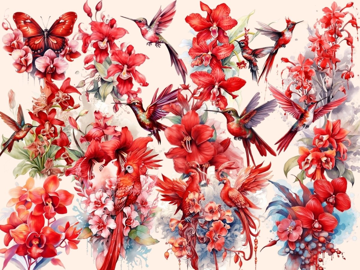 Red Petunias Watercolor Clipart