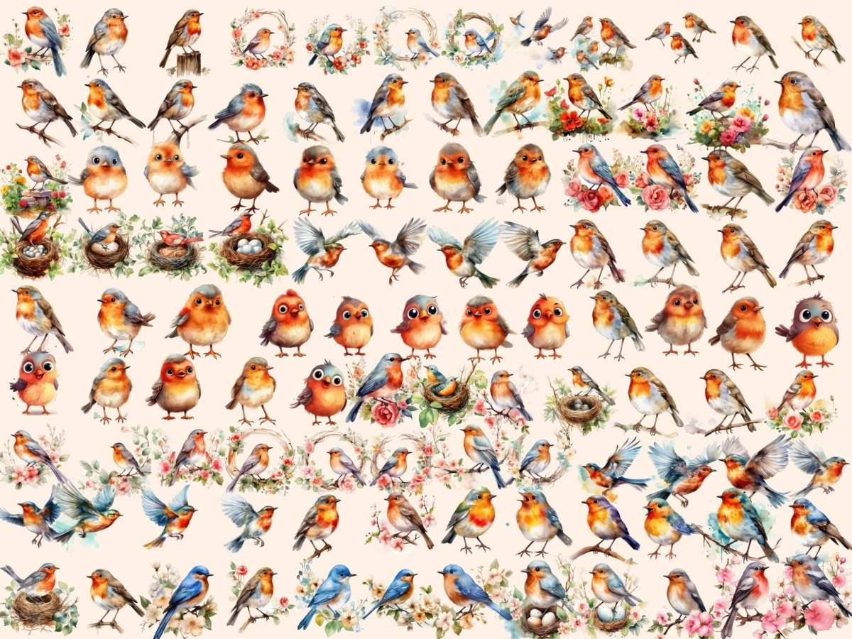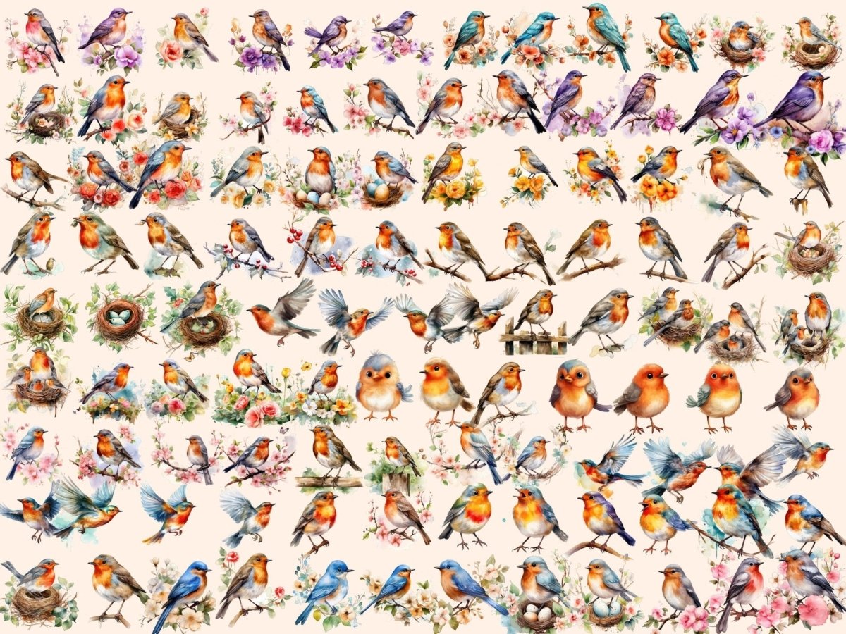 Cottagecore Birds Watercolor Clipart