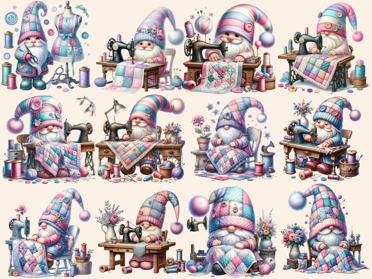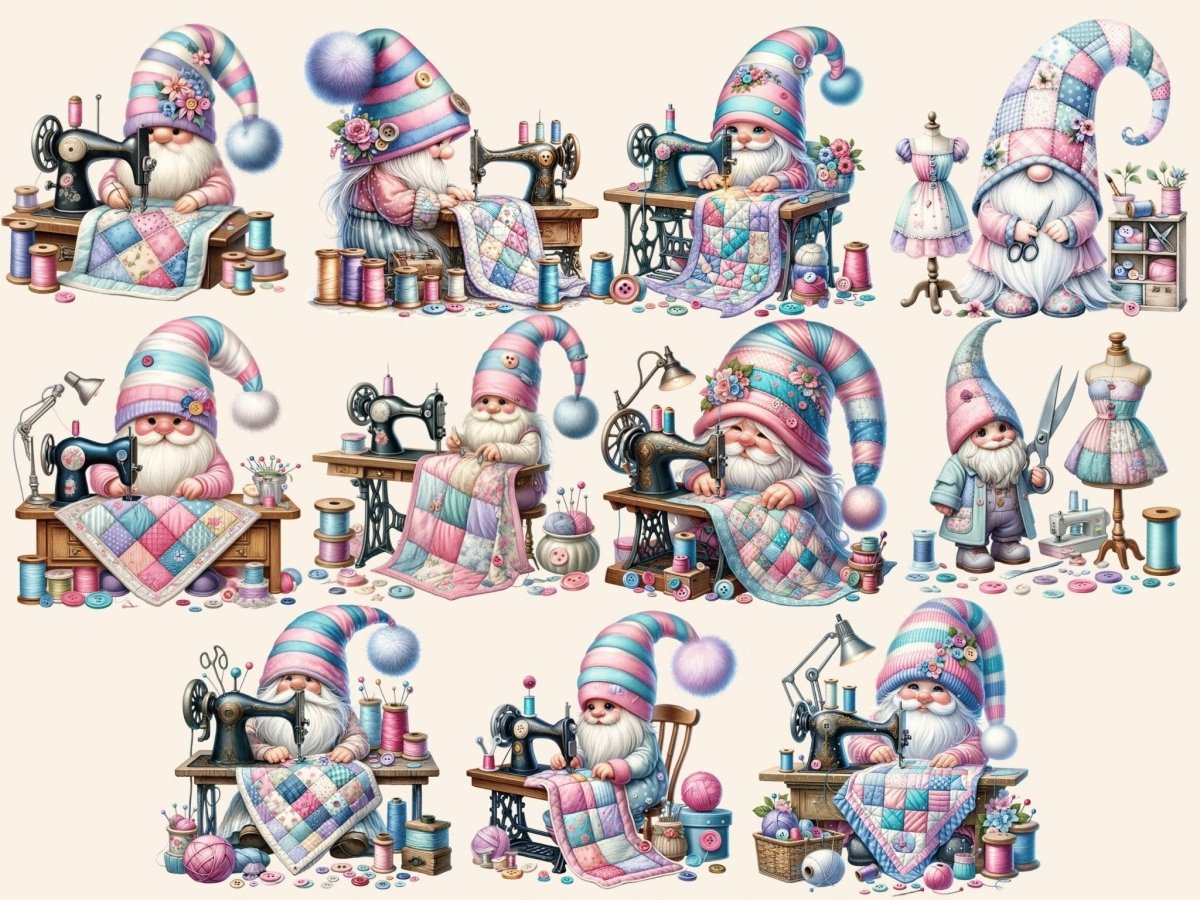 Sewing Gnomes (P3) Clipart