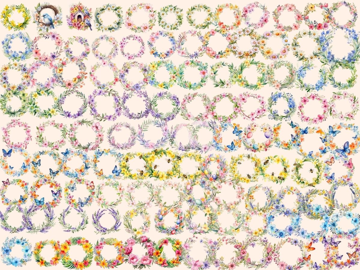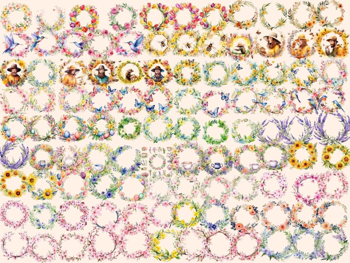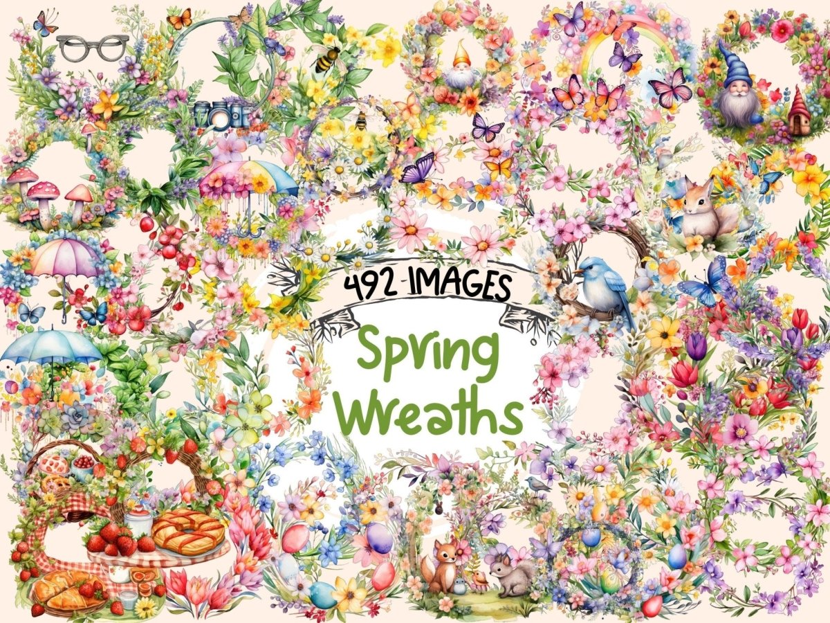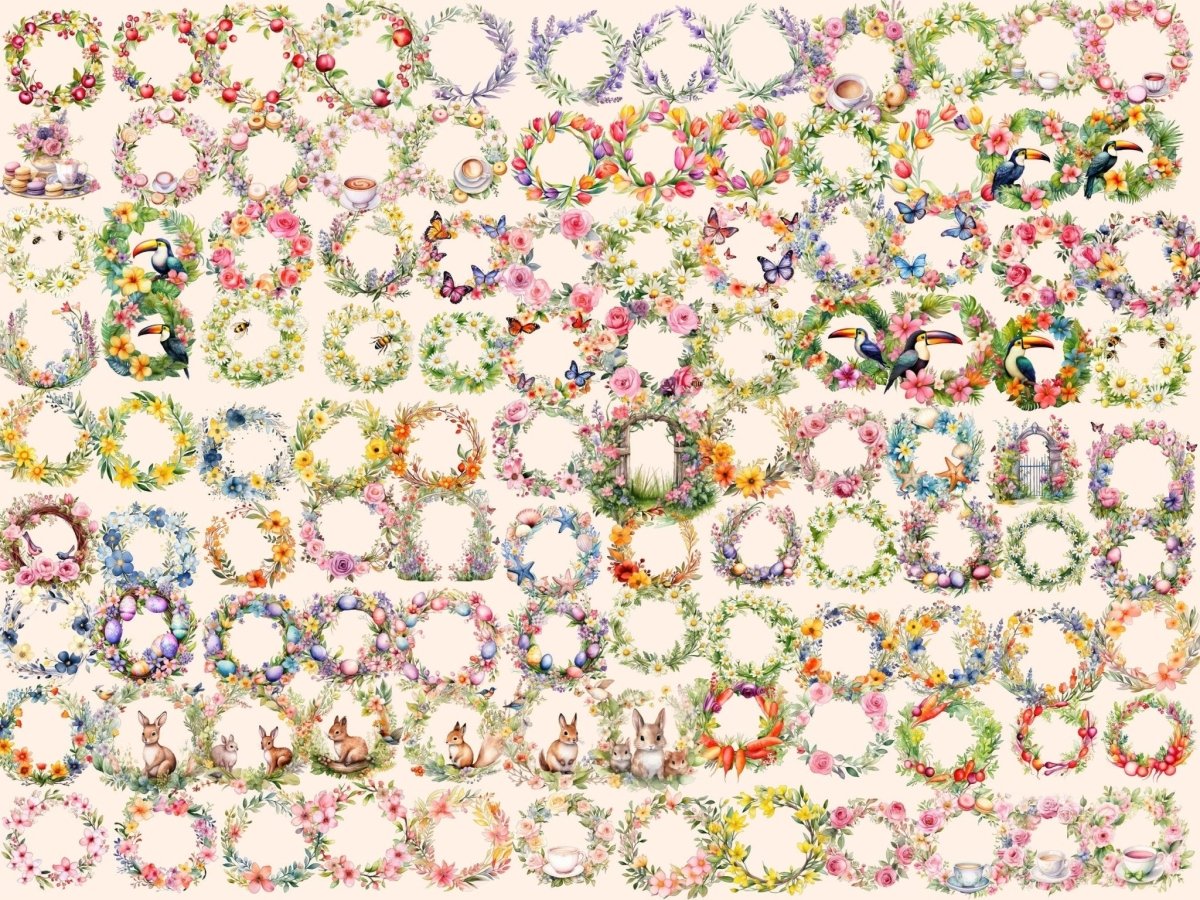 Spring Animal Wreaths Watercolor Clipart