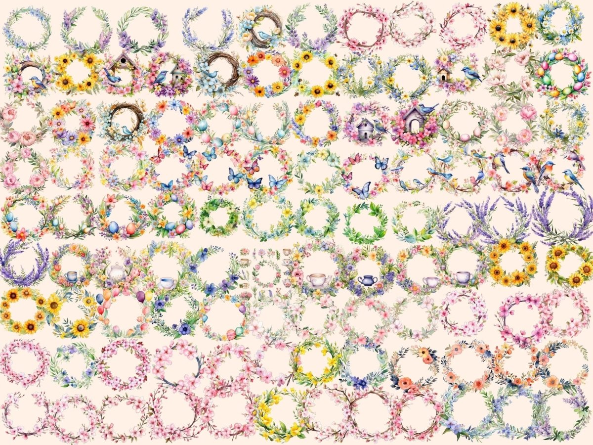 Spring Bird Wreaths Watercolor Clipart