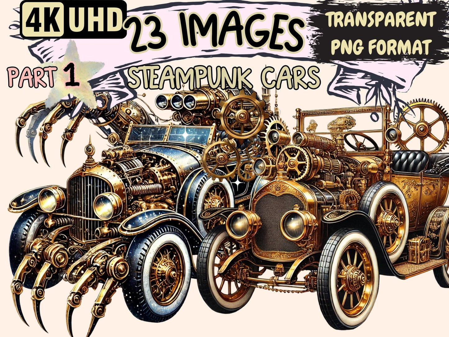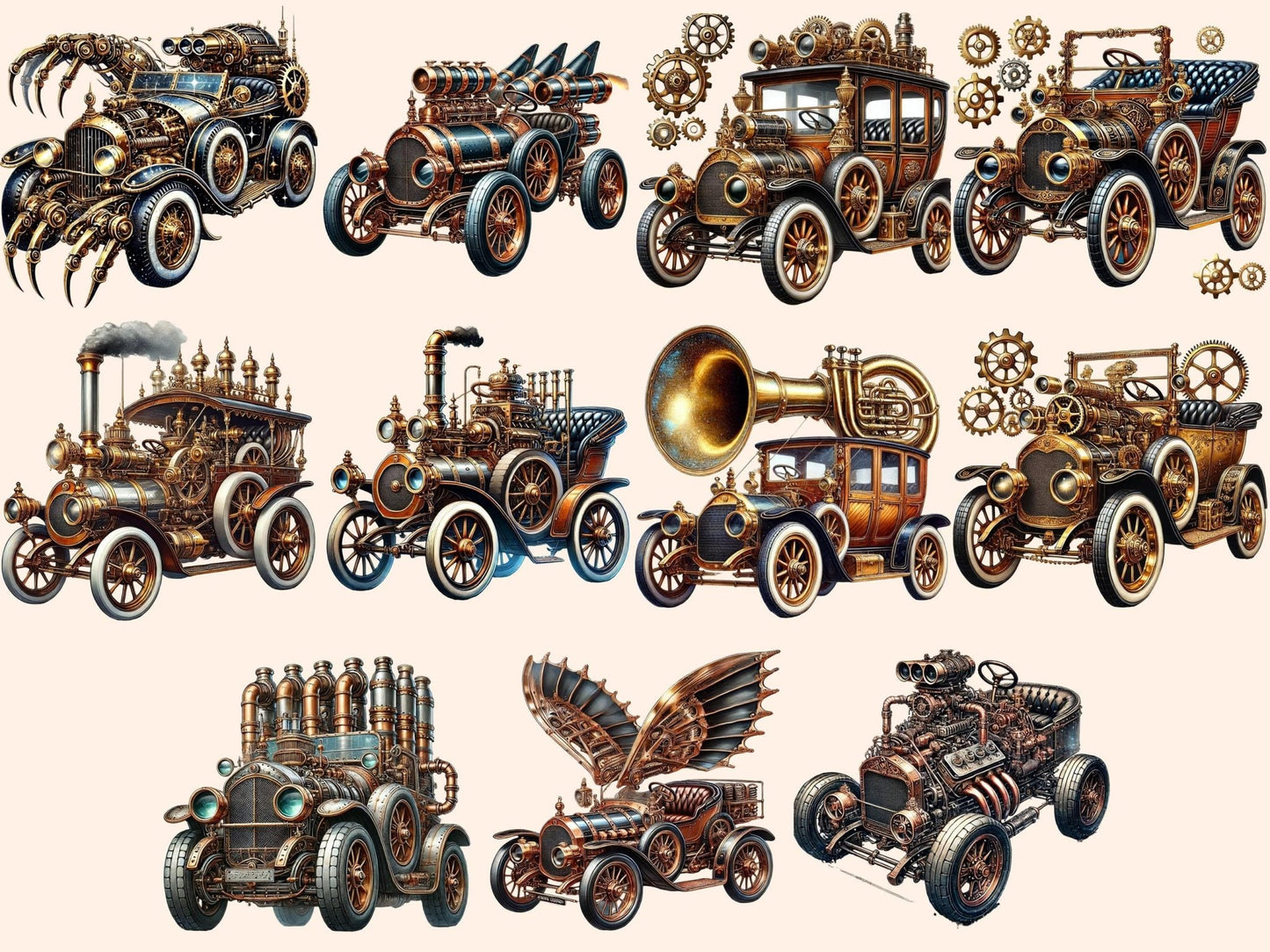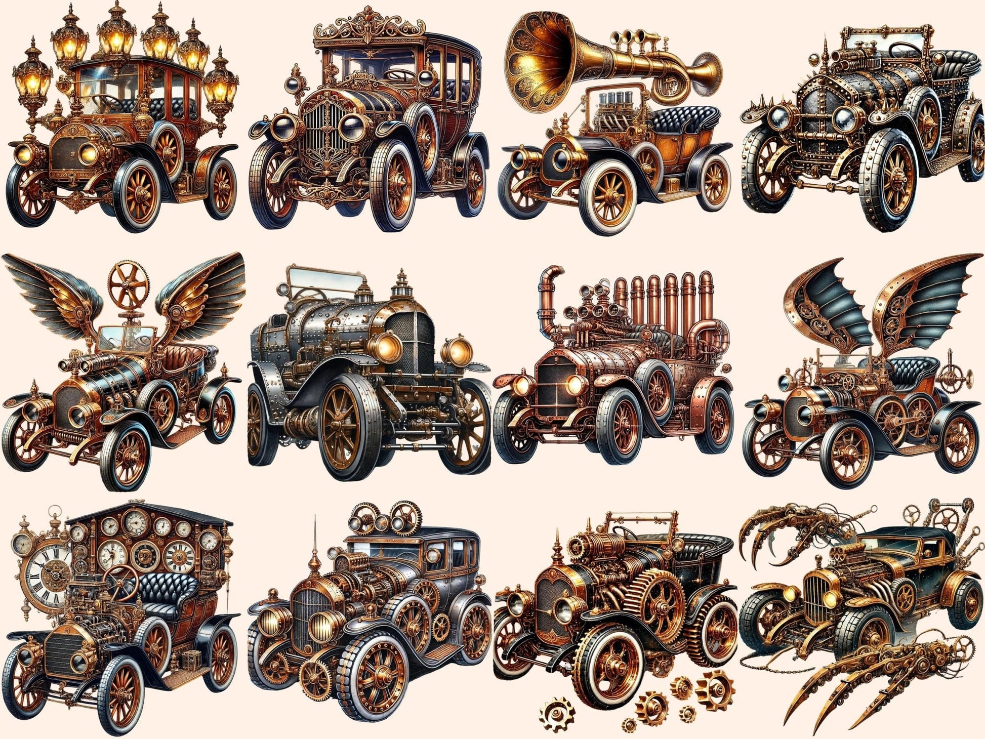 Steampunk Cars Watercolor Clipart