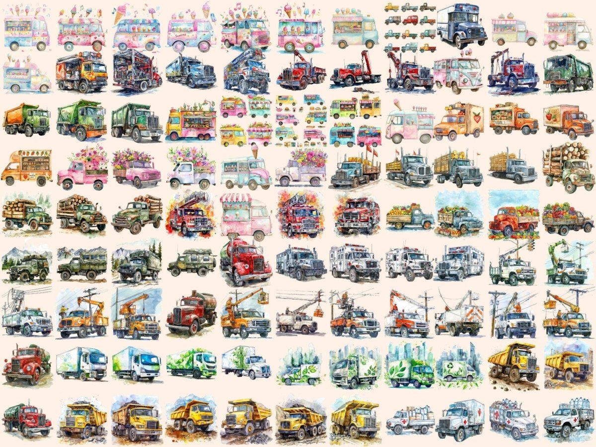 Floral Trucks Watercolor Clipart