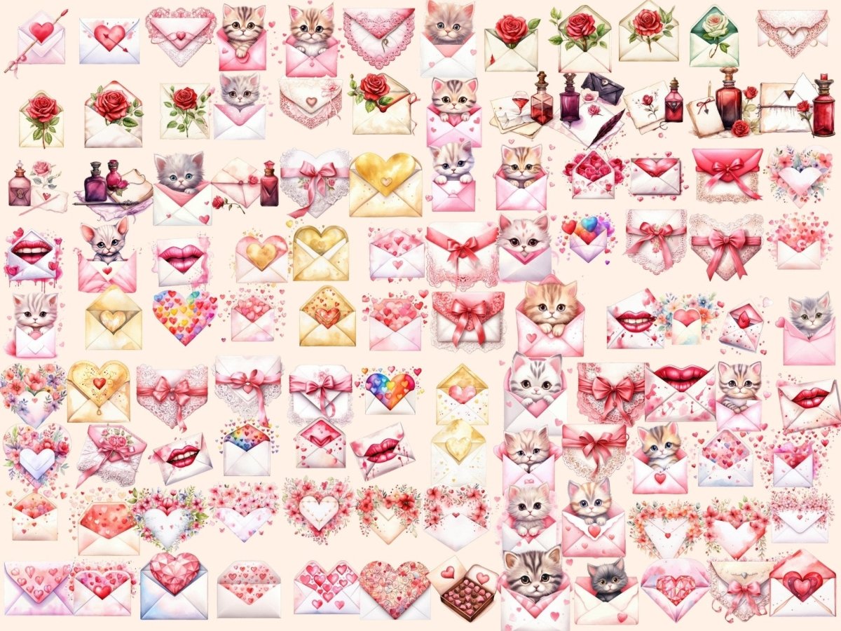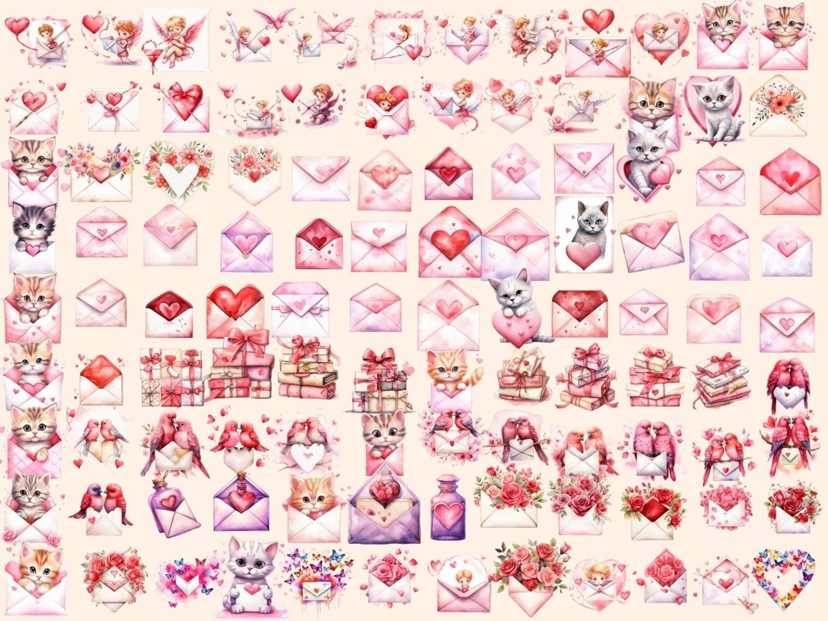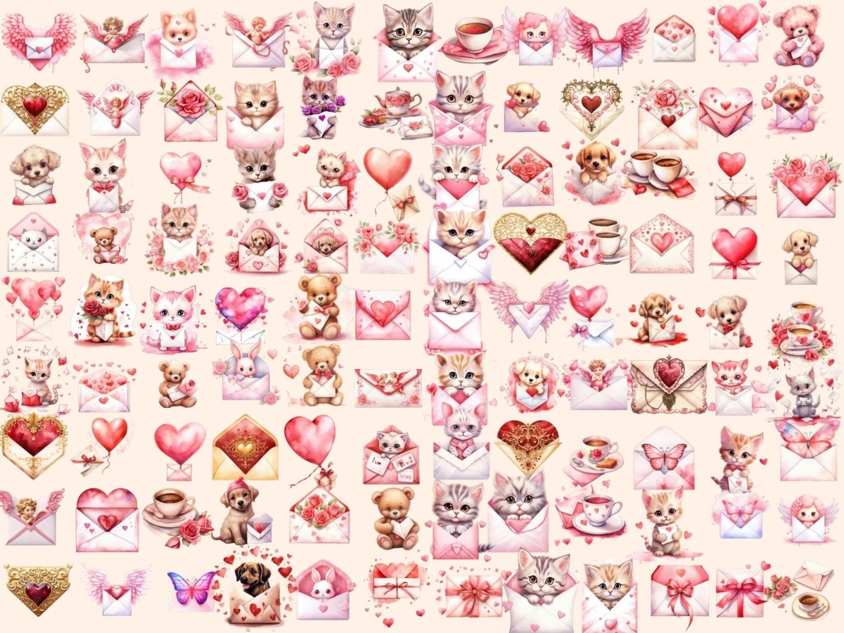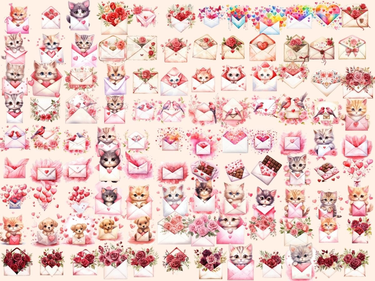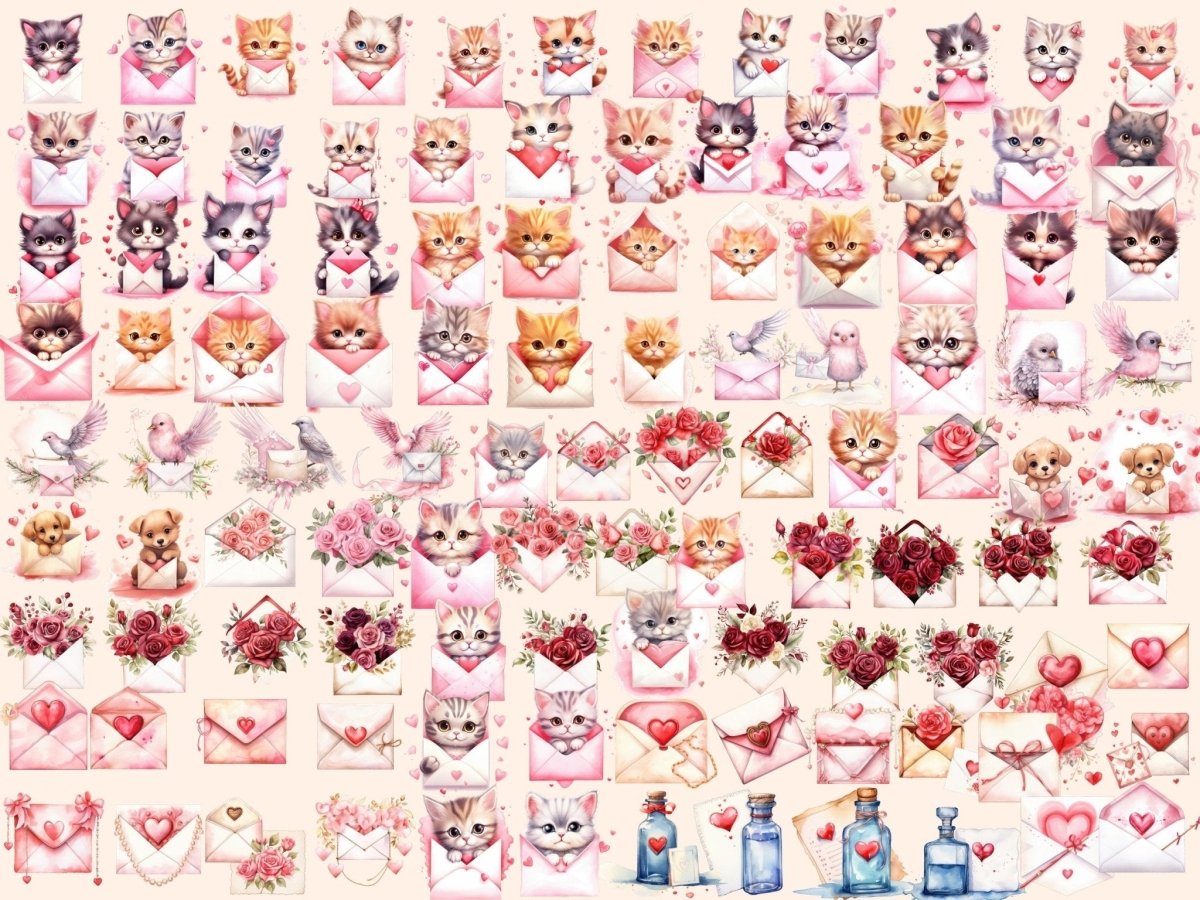 Valentine's Day Cats Watercolor Clipart