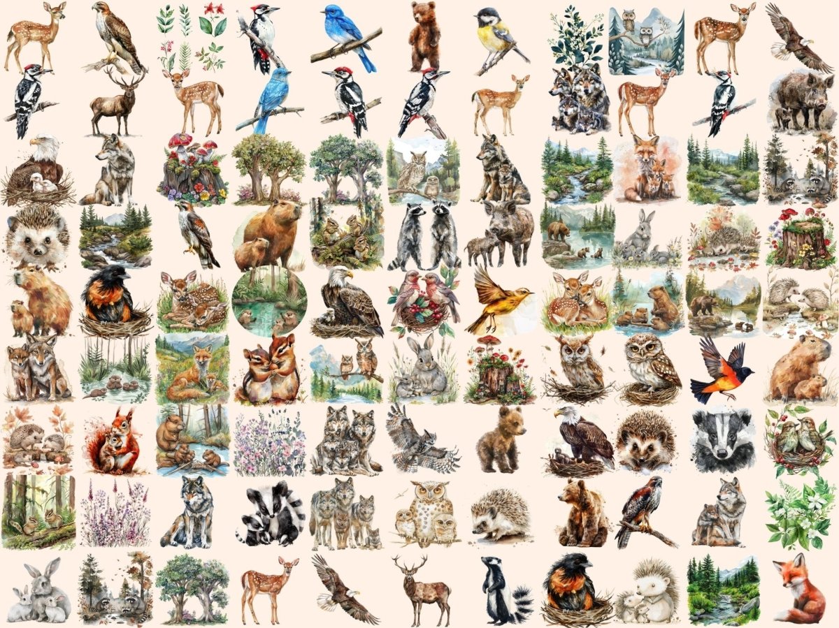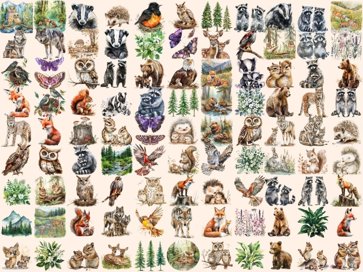 Vintage Woodland Watercolor Clipart
