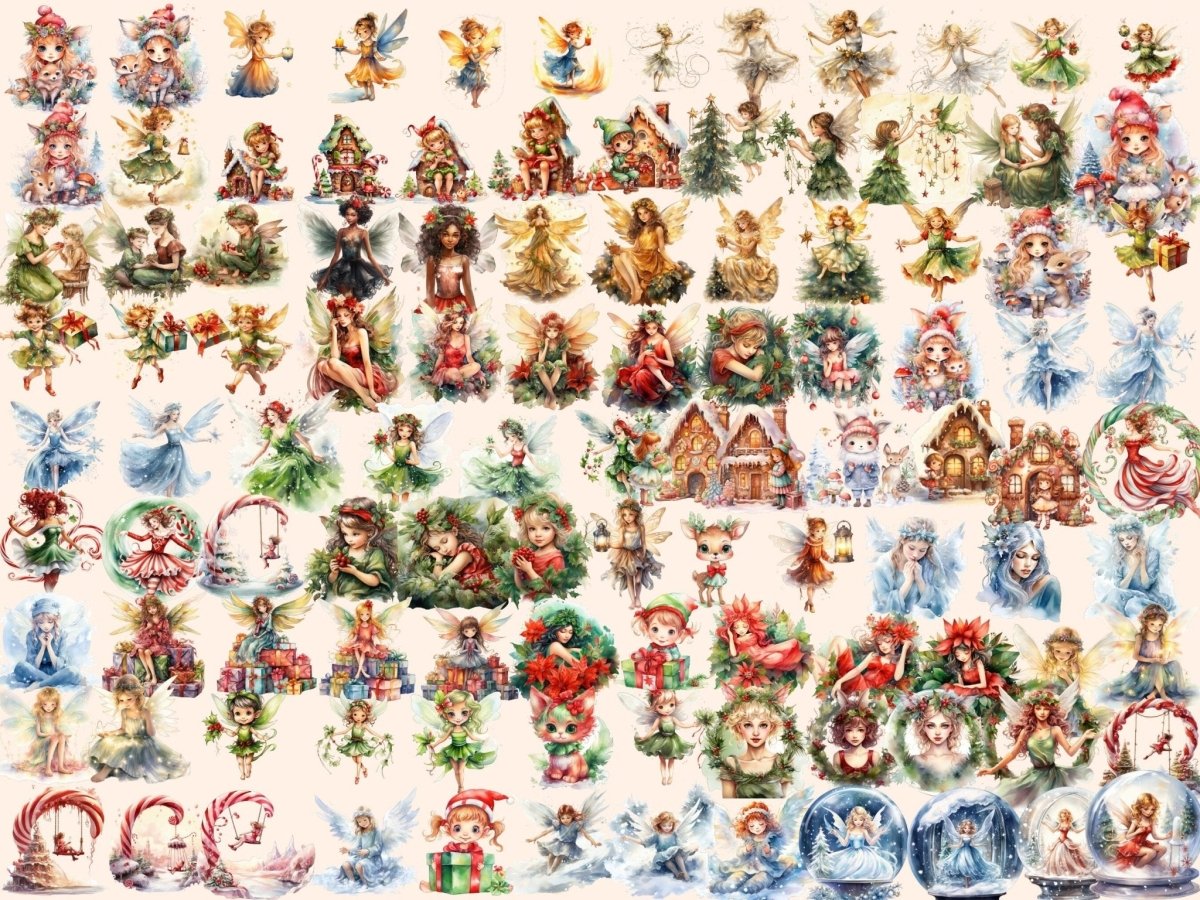 Christmas Fairies Watercolor Clipart