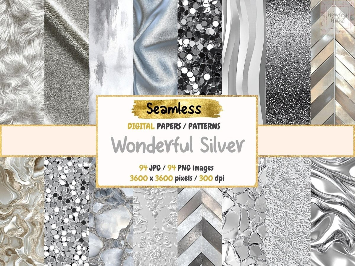 Wonderful Blush Rose & Silver Seamless Digital Paper