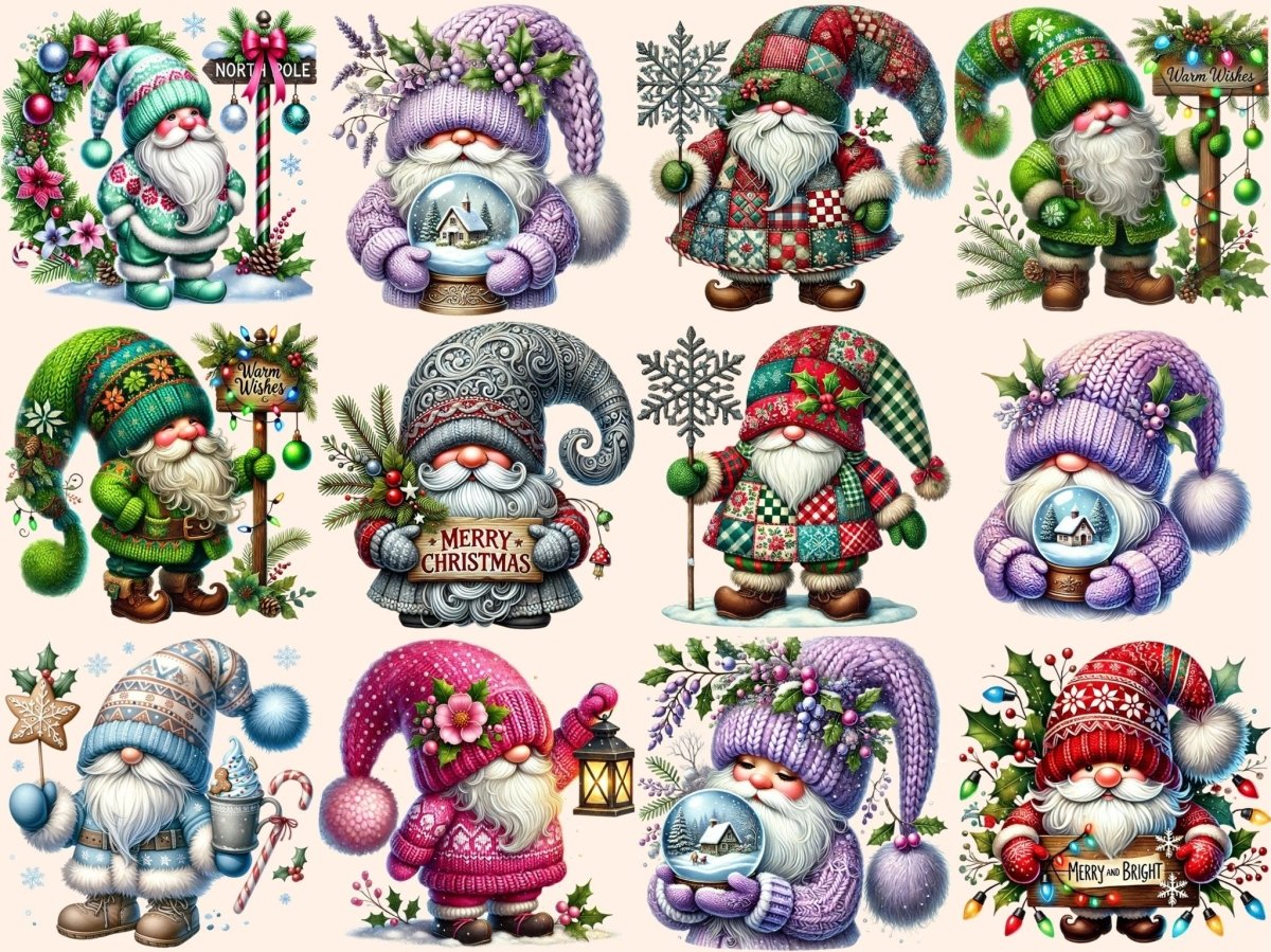 Pastel Christmas Gnomes Clipart