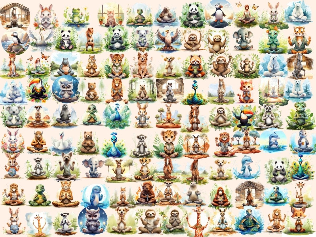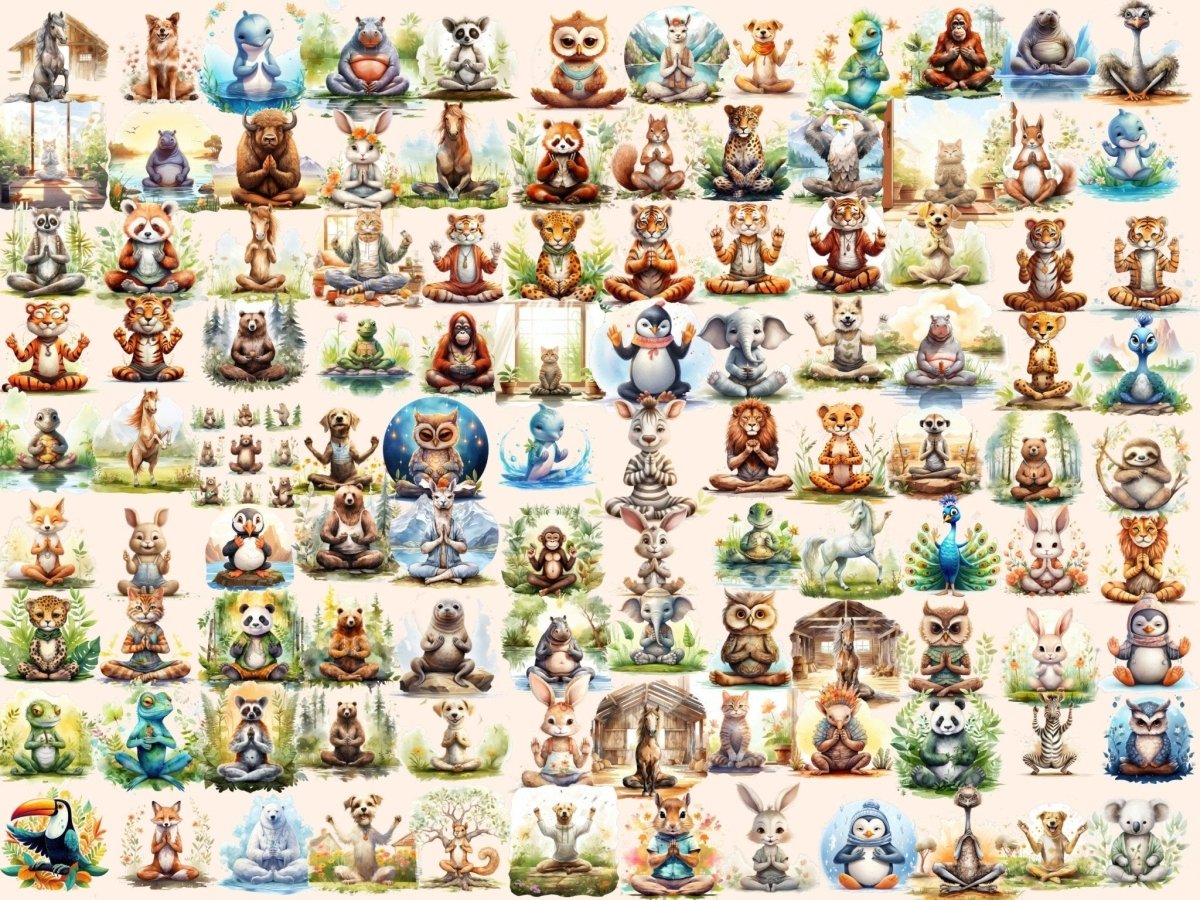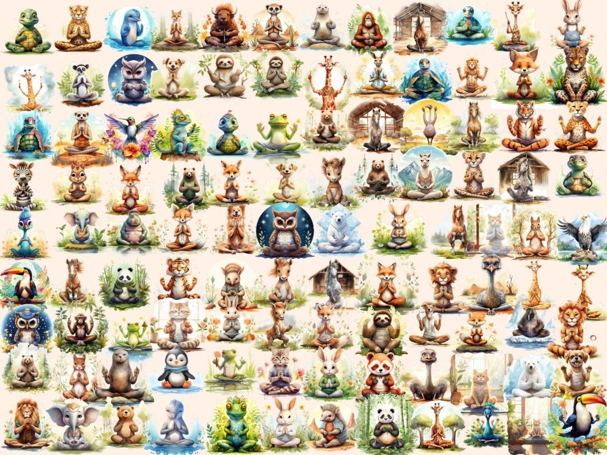 Sleepy Animals Watercolor Clipart
