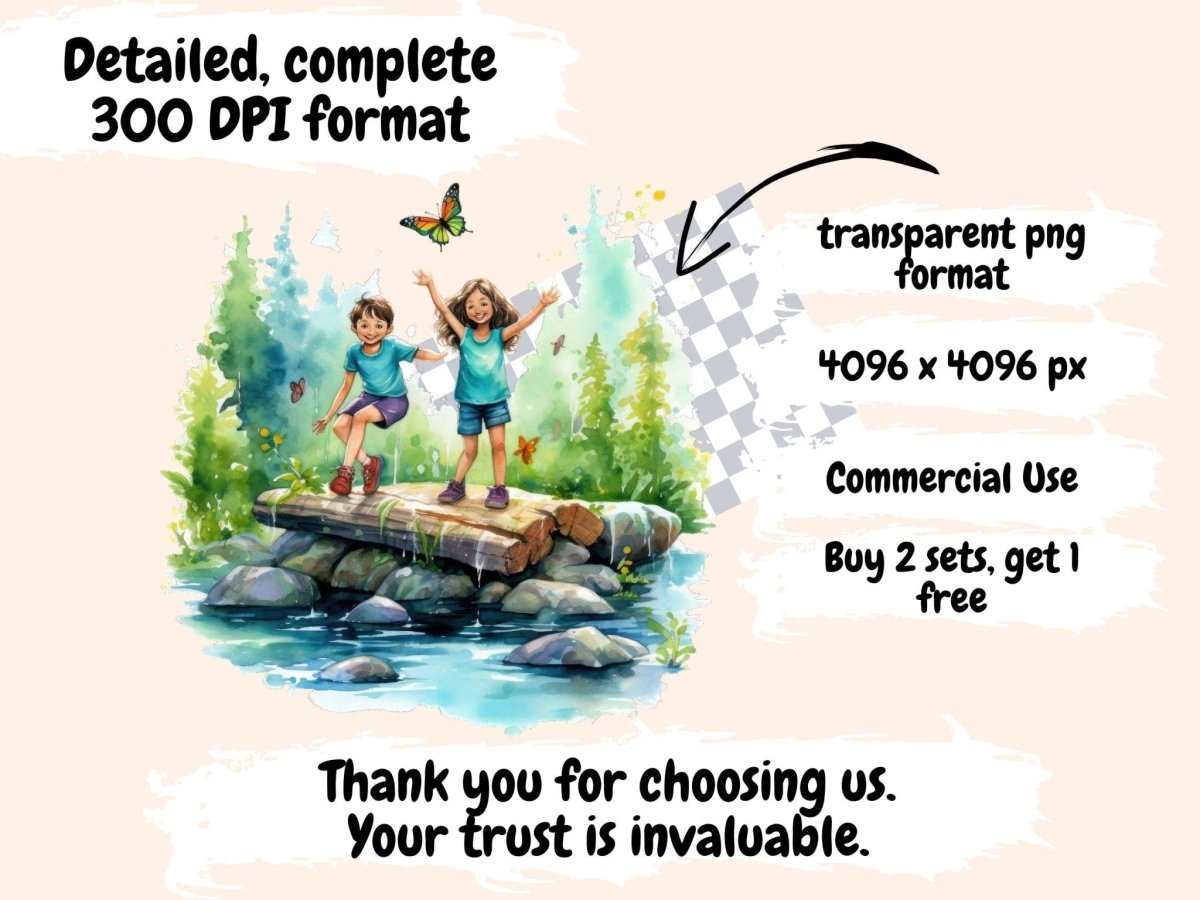 Retro Kids Watercolor Clipart