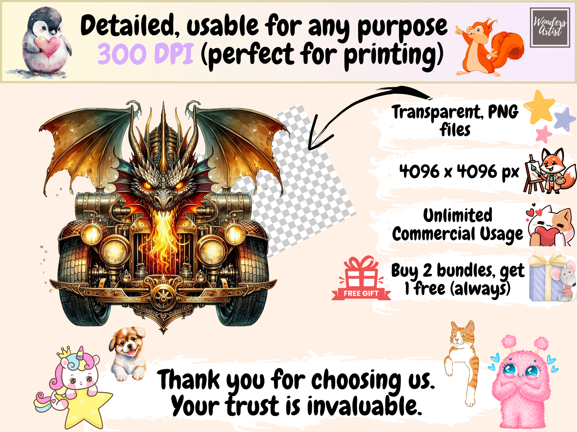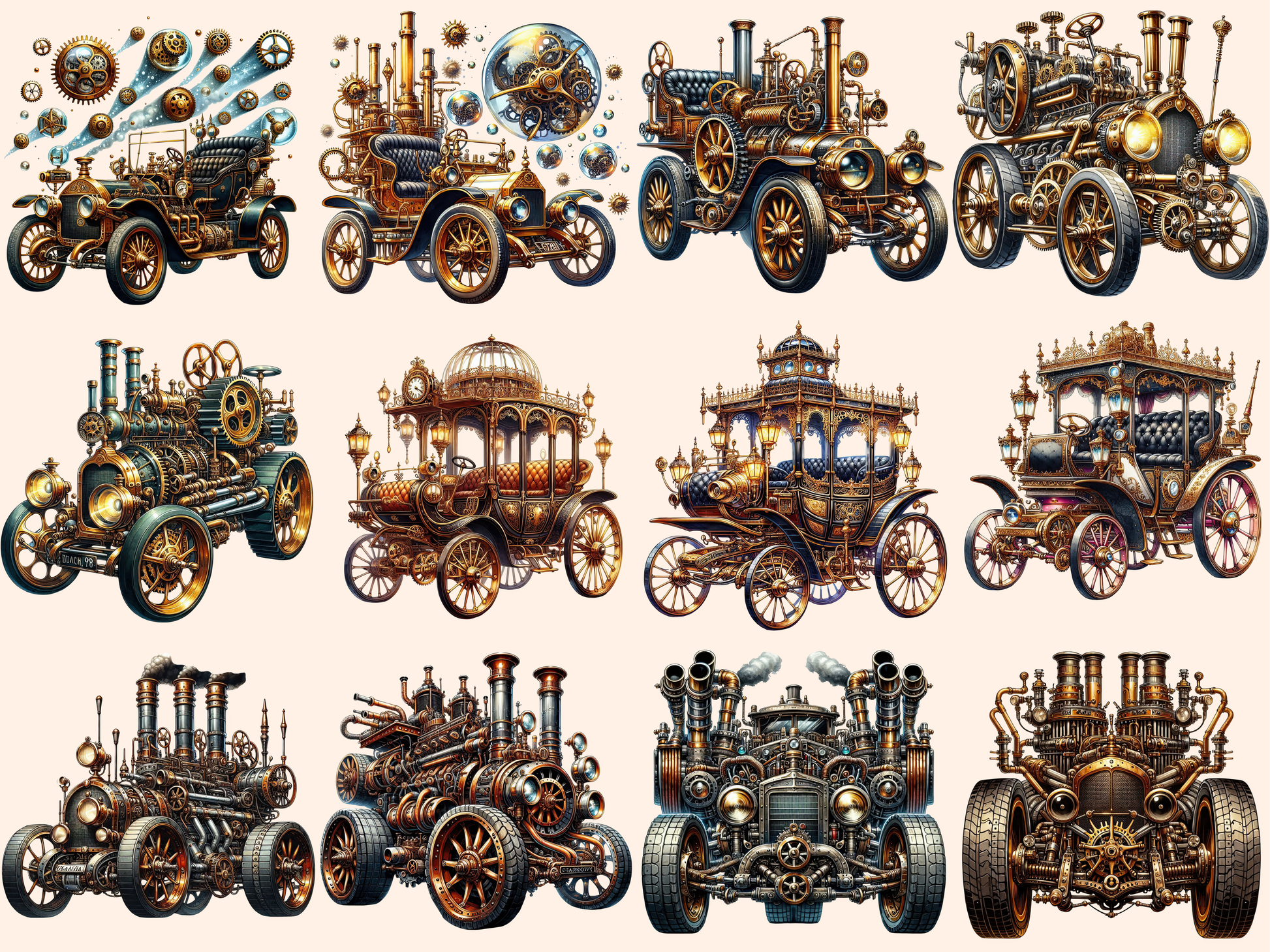 Кліпарт акварельних автомобілів у стилі стимпанк